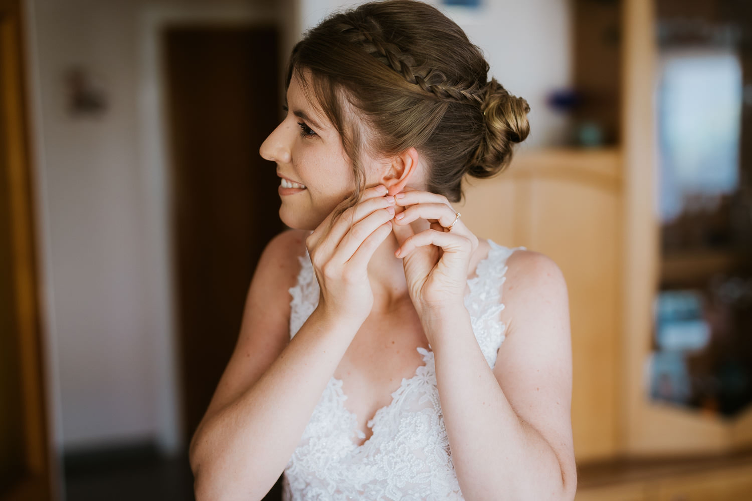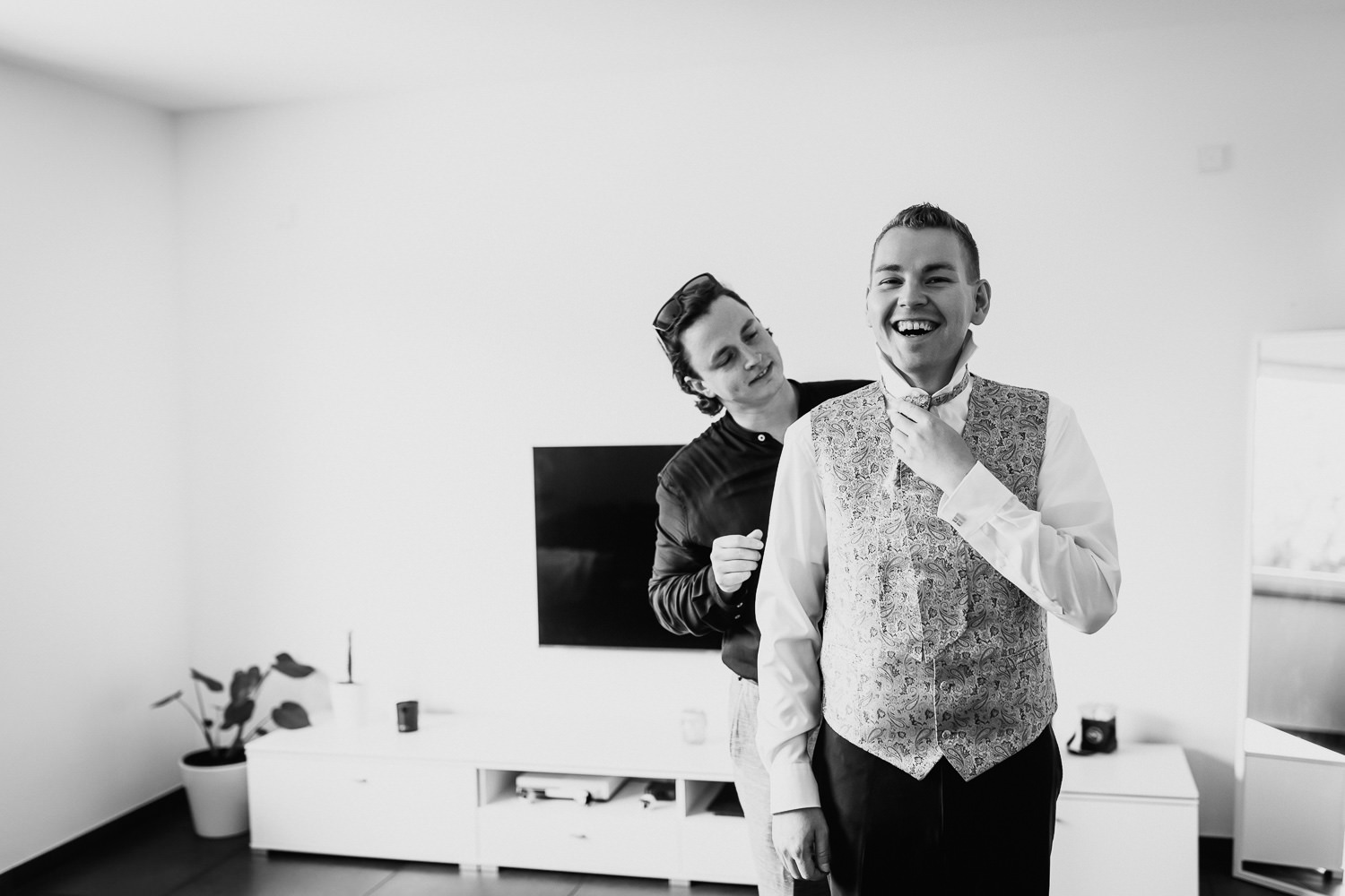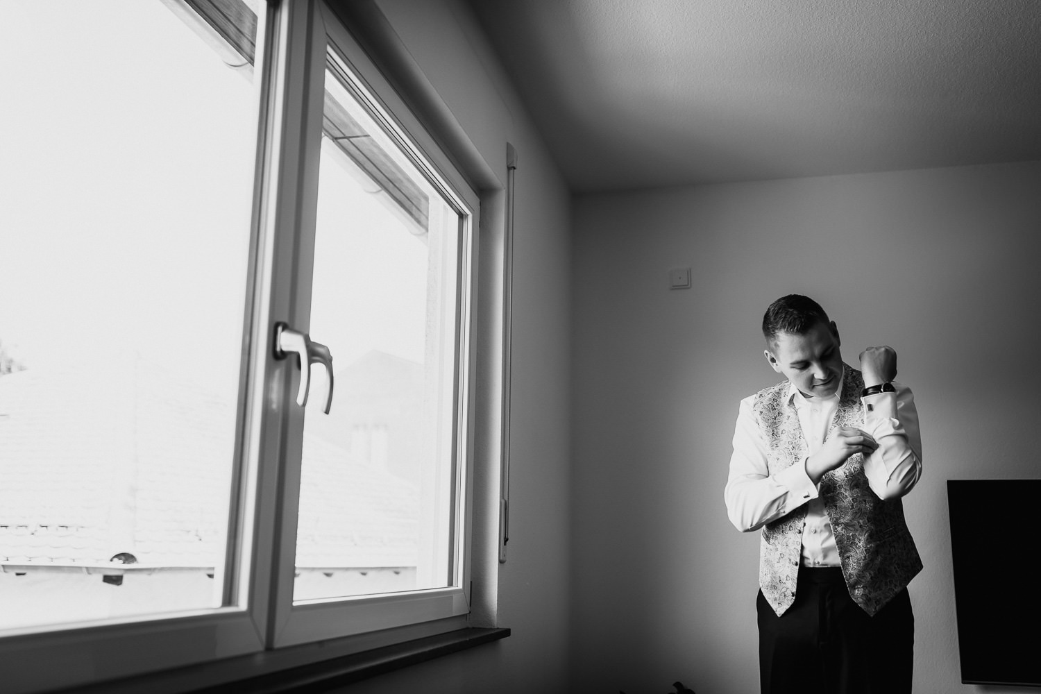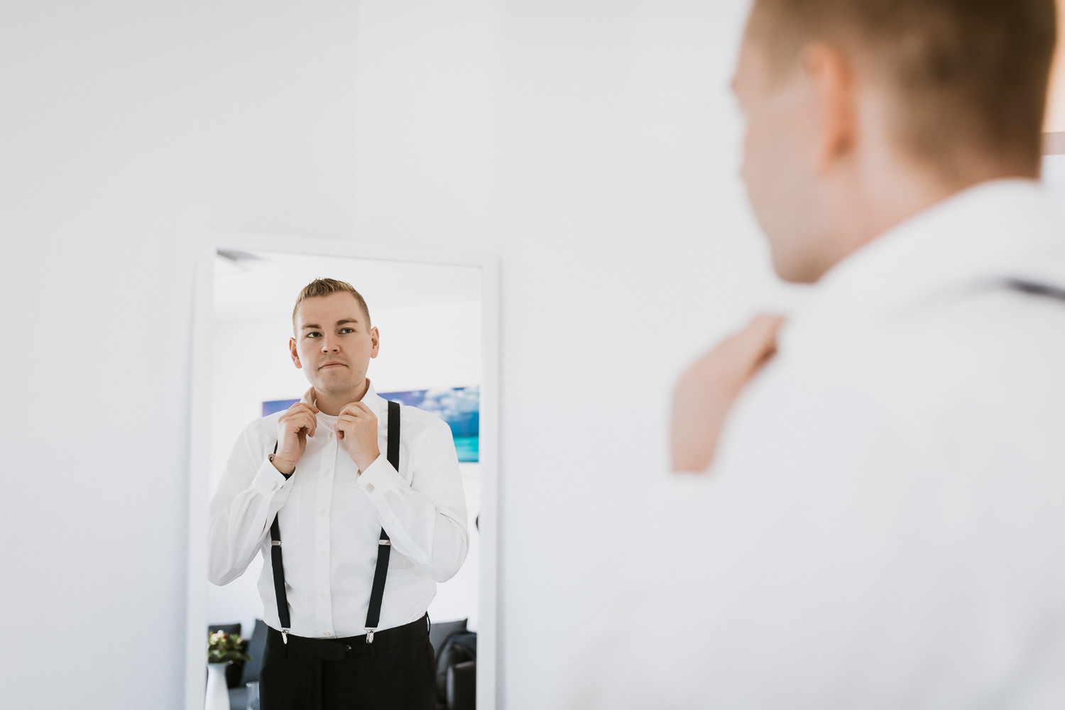 Losgelegt haben wir zu hause beim getting ready. Oft fragen mich dir Pärchen, wie viel Zeit man als Brautpaar dafür einplanen sollte. Normalerweise reichen für die Braut 45-60 Min und für den Bräutigam 15-30 Min aus, um coole getting ready Bilder zu schießen. Ich persönlich mag das getting ready sehr, die Bilder sind der perfekte Einstieg in eine Fotoreportage.