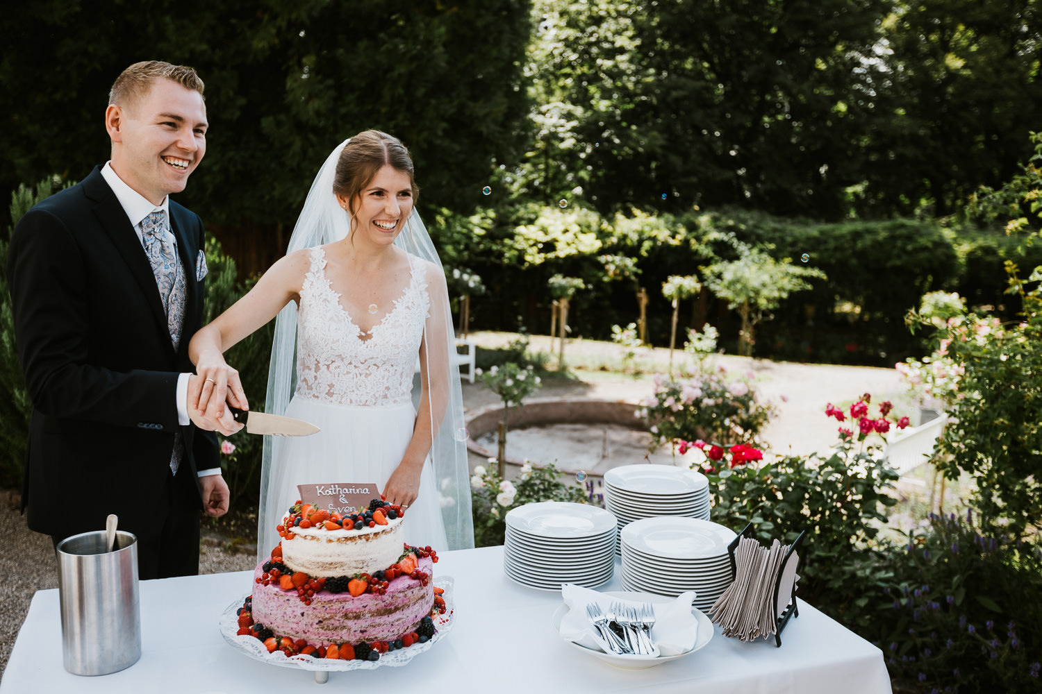 Nachdem wir unsere entspannte Runde zu dritt abgeschlossen hatten, standen noch die Gruppenbilder auf der to-do-Liste. Dafür haben sich die beiden eine Liste angefertigt, auf der bereits alle Gruppenkonstellationen aufgeschrieben waren. Ein weiteres Highlight war natürlich die Hochzeitstorte. Wer bei den beiden die Hand oben hatte, bleibt unser kleines Geheimnis.